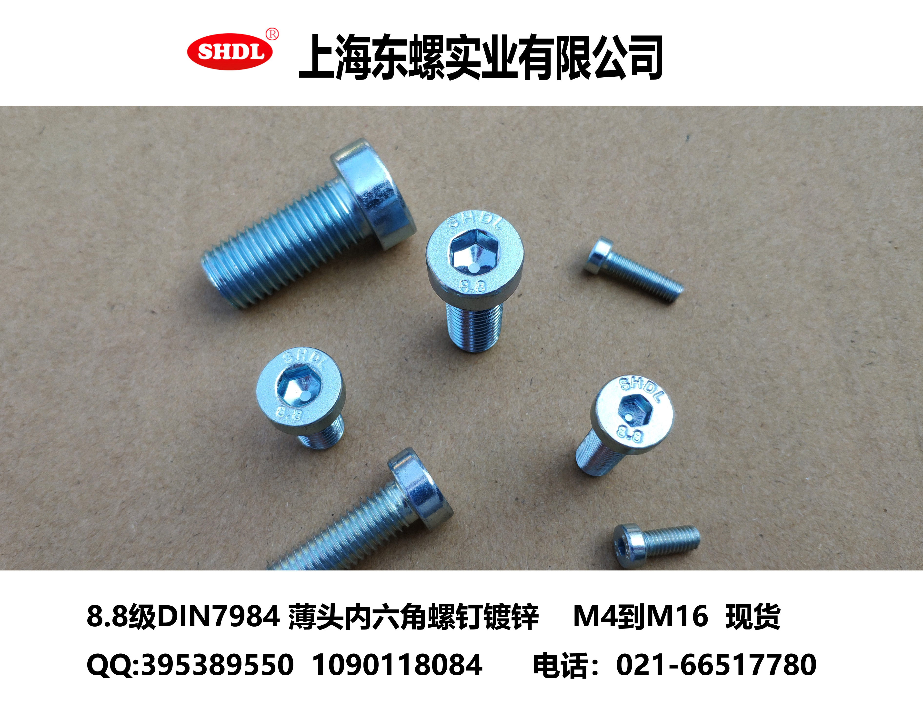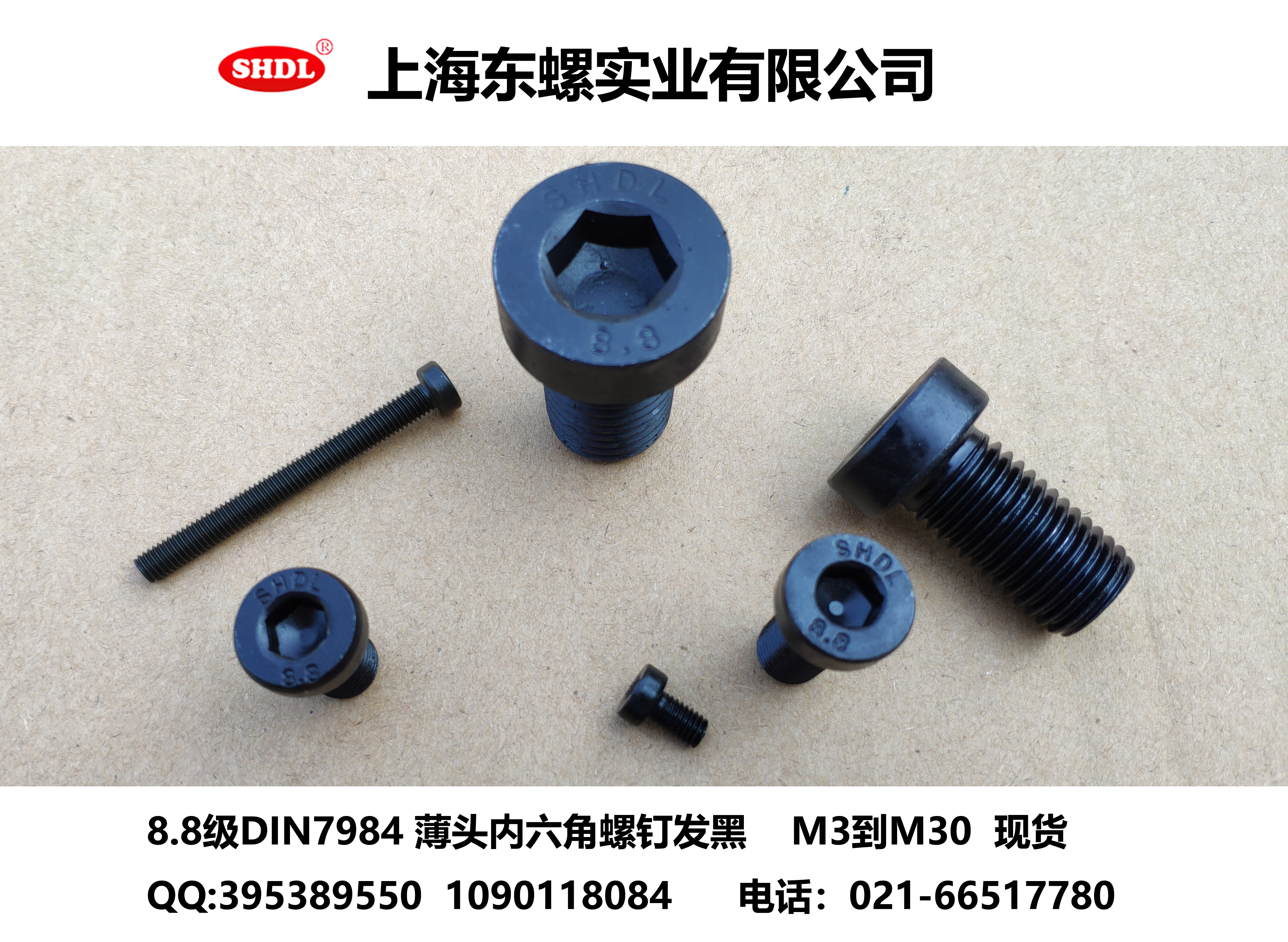 8.8級DIN7984薄頭內(nèi)六角螺絲,規(guī)格:M3-M30,表面處理:發(fā)黑,蘭白鋅等.